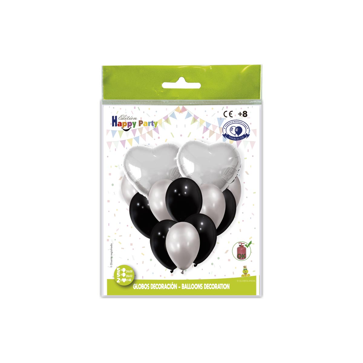 B/ CONJ. GLOBOS POLIAM. CORAZON PLATA-38 R.5285-38